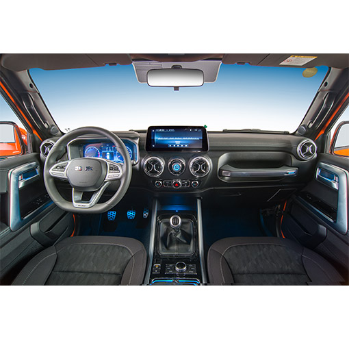 電子四輪驅動、中控門鎖、電動車窗、智能一鍵啟動、發動機電子防盜系統、主副駕駛安全氣囊、電動外后視鏡(帶折疊加熱功能)、高級皮質座椅、駕駛座電動6項調節、空調、USB輸入接口、全液晶顯示屏、倒車影像、GPS導航系統、LED日間行車燈、電子ABS+EBD、制動輔助HBA、非承載式金屬車身。