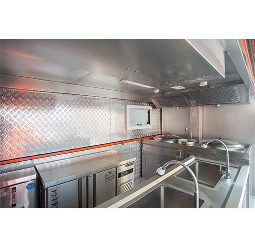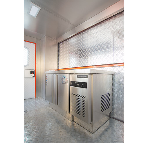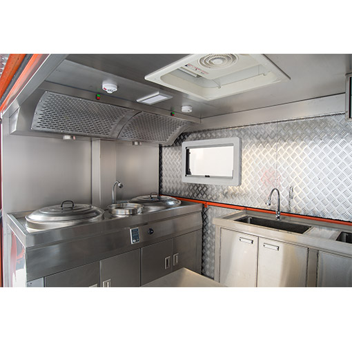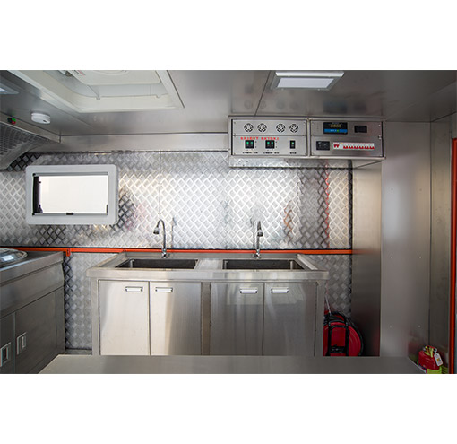 車輛配備:軍工級車載二聯(lián)灶(一炒灶、一湯灶)、抽油煙機、大容量電壓力鍋(電飯煲)、開水器、冷藏柜、儲物吊柜、不銹鋼洗菜料理臺、餐具套裝及行車供電系統(tǒng)。