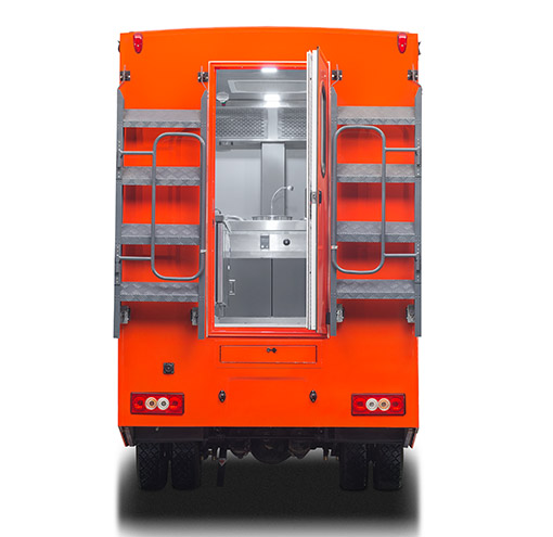 四輪驅(qū)動、動力轉(zhuǎn)向、排氣制動、斷氣制動、可調(diào)方向盤、空調(diào)、多媒體音響、ABS制動行駛記錄儀兼北斗系統(tǒng)接口、遙控中控鎖、電動玻璃升降器、車身噴涂防火標識、雙側(cè)液壓電動展開。